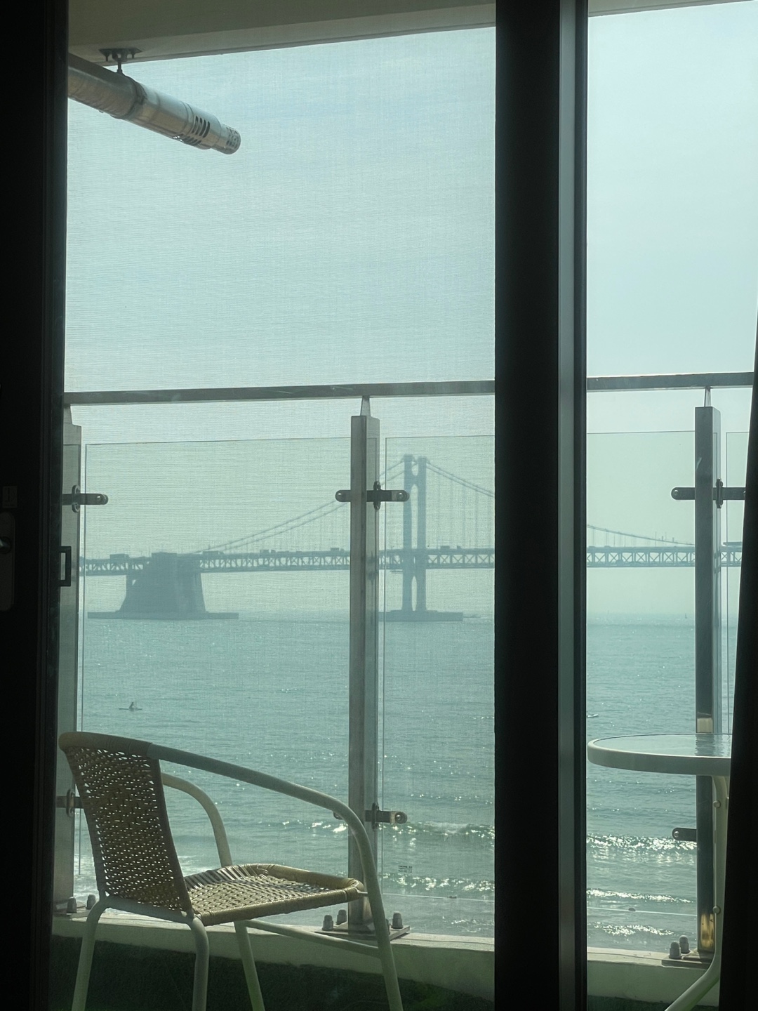 - 숙소 베란다 너머로 보이는 광안대교 뷰가 너무 좋아서